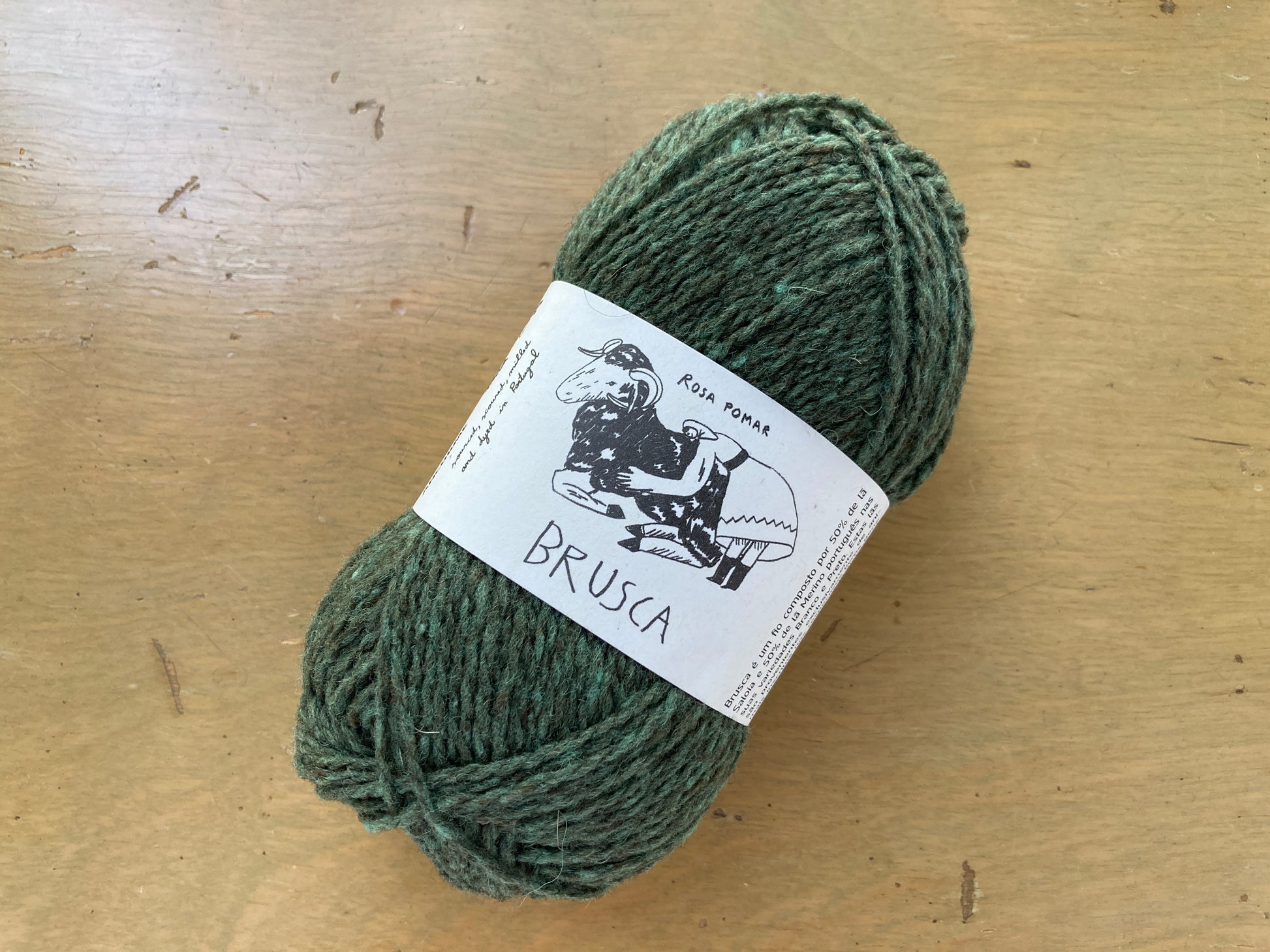 Brusca is a breed and flock specific yarn, composed of 50% Saloia and 50% Merino Branco and Merino Preto wool. Saloia is the native sheep breed to the region of Lisbon and Setúbal. It is well documented since the 19th century, famous for having some of the finest available wool in the country. This wool shines in Brusca, which has a rustic 2ply texture and a soft, springy hand. Expect to find occasional (and easily removed) bits of vegetation spun into the yarn, a reminder that Brusca is gently processed!